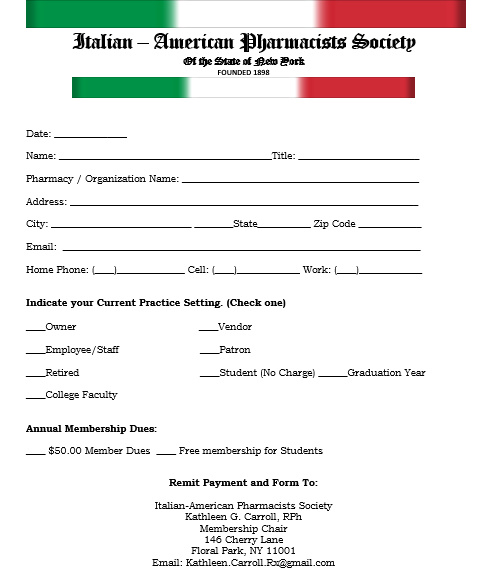 The IPS, founded in 1898, is comprised of pharmacists and pharmacy students of Italian heritage who practice in various settings. The IPS is an ethnic affiliate of the Pharmacists Society of the State of New York. Several IPS members serve as PSSNY officers and actively participate in PSSNY. The IPS holds monthly Dinner Meetings throughout the year, with the exception of July and August. The organization also holds an Annual Christmas party in December as well as an Annual Dinner Dance in March.